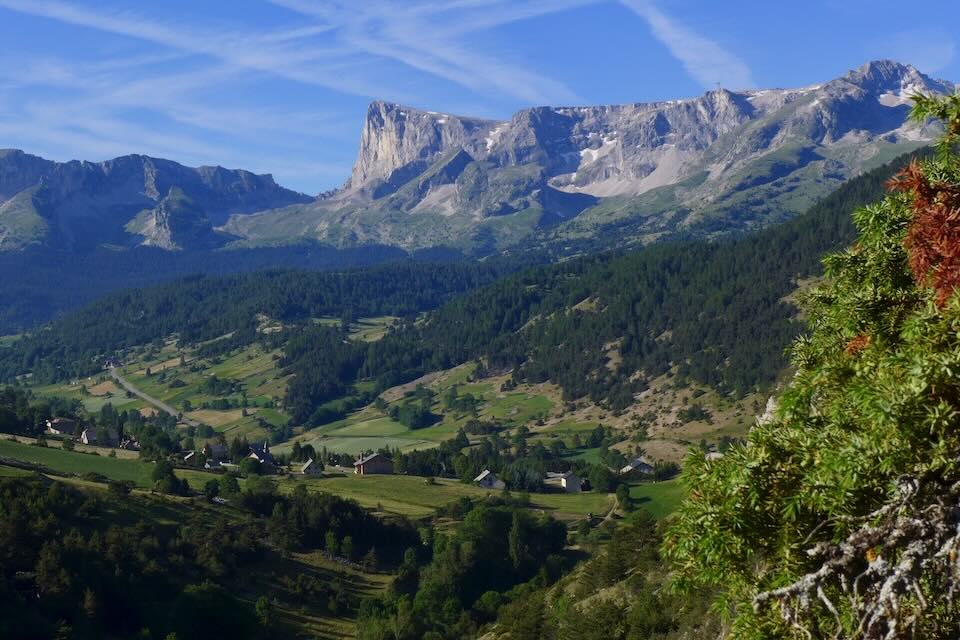 A pied depuis La Jarjatte, nous reprenons notre parcours autour, et aujourd’hui au cœur, du système d’Aiguilles dont les pics et parois verticales spectaculaires ont conduit au classement du Vallon. Ce splendide parcours nous ramène sur le synclinal du Dévoluy par un bucolique vallon qui contraste avec le versant minéral de Lus la Croix-Haute. Tout en douceur, nous descendons les alpages jusqu’à Lachaup.