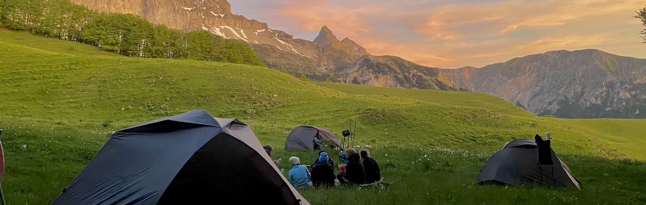 Parmi les week-ends bivouac que nous proposons, celui du Dévoluy est cher à notre cœur. Nous sommes à domicile, dans l’un des sites les plus attachants des pré-alpes : le vallon de La Jarjatte. C’est dans ce paysage hors normes au profil très alpins que se déroule notre petite expédition. Depuis Grenoble, l’accès en train est aisé avec une arrivée à la gare de Lus-la-Croix-Haute. Le premier bivouac est installé juste au-dessus de ce vallon classé à la biodiversité exceptionnelle. Le lendemain, seuls 500 m de dénivelé nous séparent du second bivouac. Un beau sentier en balcon, nous dépose au bord d’un petit lac dont l’écrin de verdure est dominé par des hautes murailles calcaires presque dolomitiques. Sacs légers l’après-midi est consacrée à l’ascension de Vallon-Pierra avant de monter les tentes pour profiter de la soirée sous les étoiles. Le séjour s’achève le lendemain, après une très belle randonnée sous le point culminant de la Drôme, le Rocher-Rond. Encadrés par un guide expérimenté, soyez les bienvenus dans le Dévoluy, massif confidentiel et sauvage.